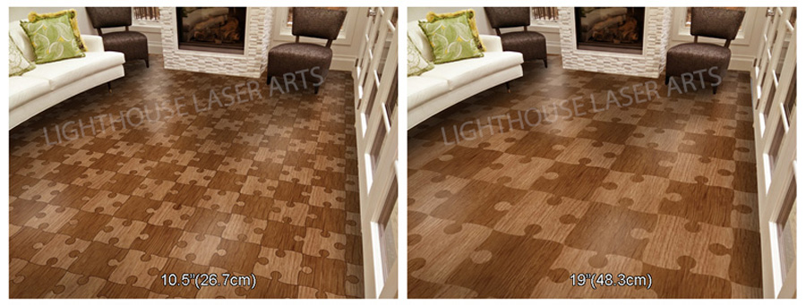 Fun, creative and distinctive! Our hardwood PUZZLE FLOOR offers clever charm and character. It elicits expressions of surprise and amazement. Instantly creates a special and memorable environment. Our Puzzle Floor provides the perfect starting point to create a theme for game rooms, home theatre rooms, family rooms, bedrooms, commercial applications for boutiques, shops and offices, etc. Any space where fun & casual elegance is desired. Precision-cut for easy glue down installation.